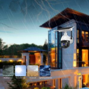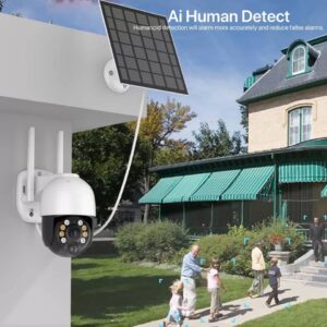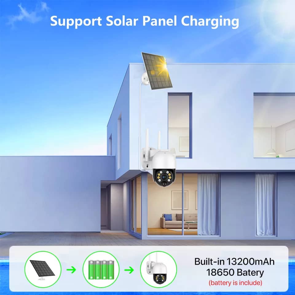 This Solar Panel Camera has Pan-Tilt features of 350 degree horizontal, 90 degree vertical which gives you a clear view (Full HD 1080P resolution) at any time. You can use the app to control the viewing angle of the camera to achieve 360-degree viewing without blind spots.